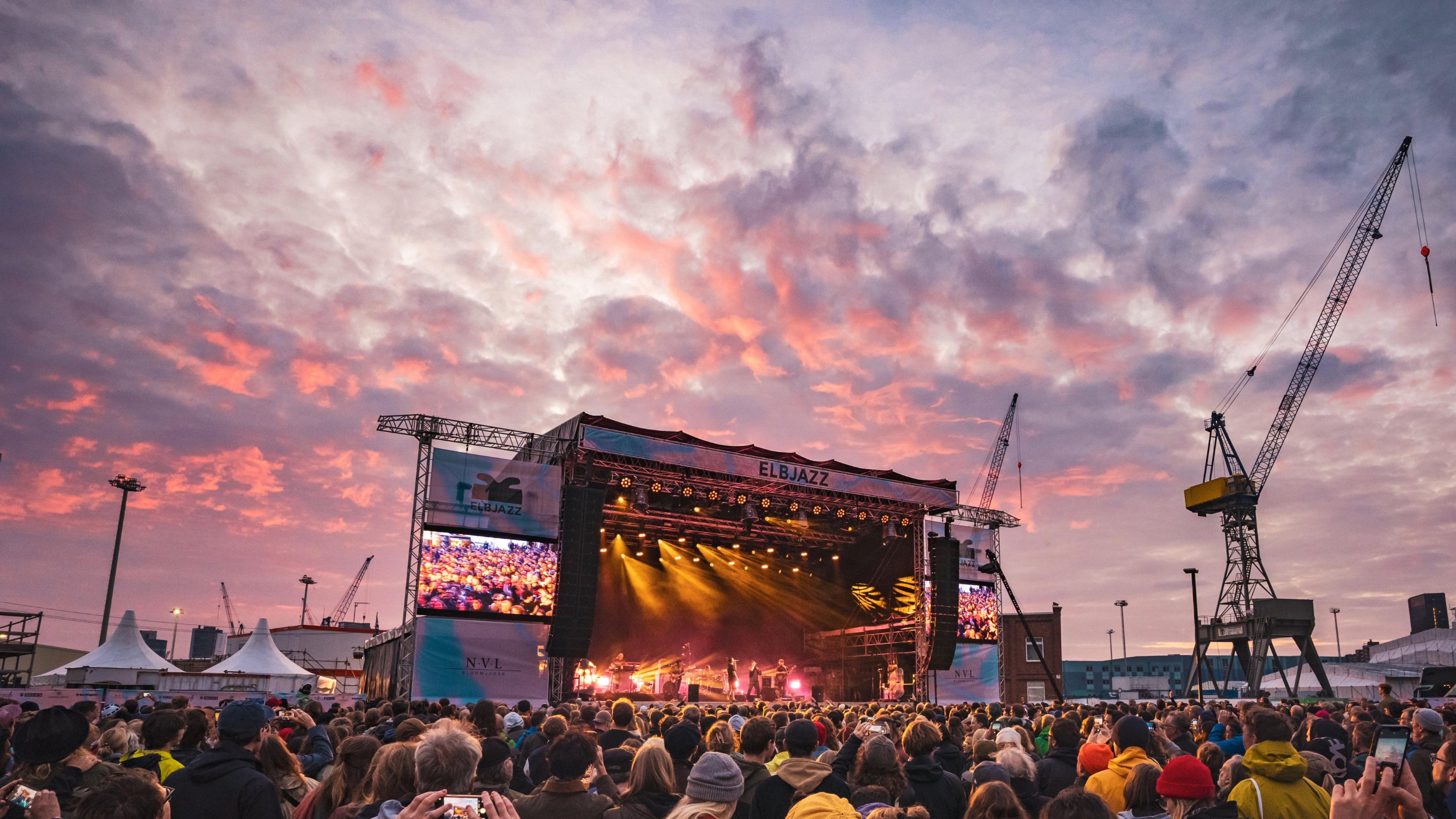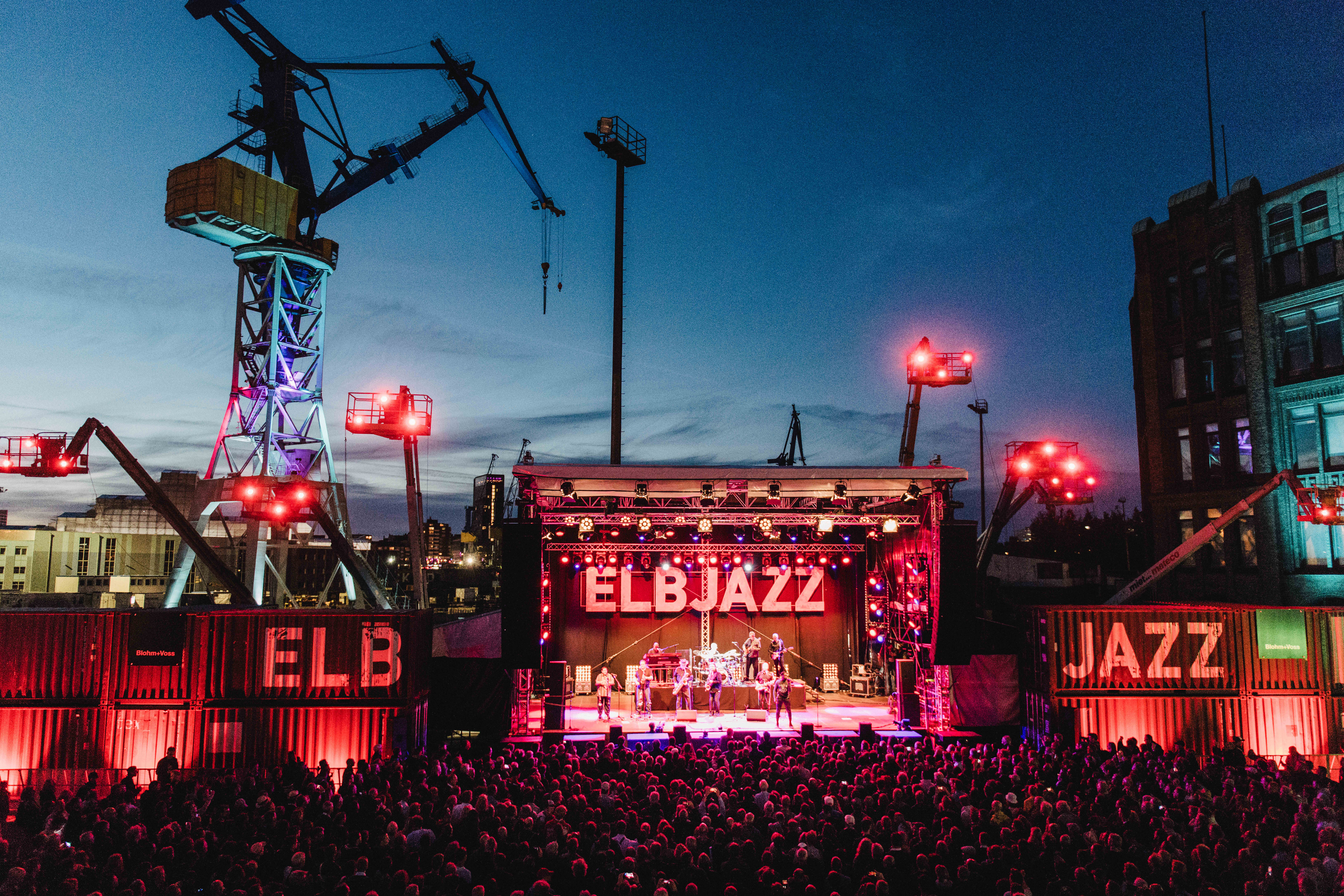Mitten im Hamburger Hafen, umgeben von Wasser, Schiffscontainern und imposanten Kränen, bietet das ELBJAZZ eine der spektakulärsten Festival-Kulissen Europas.