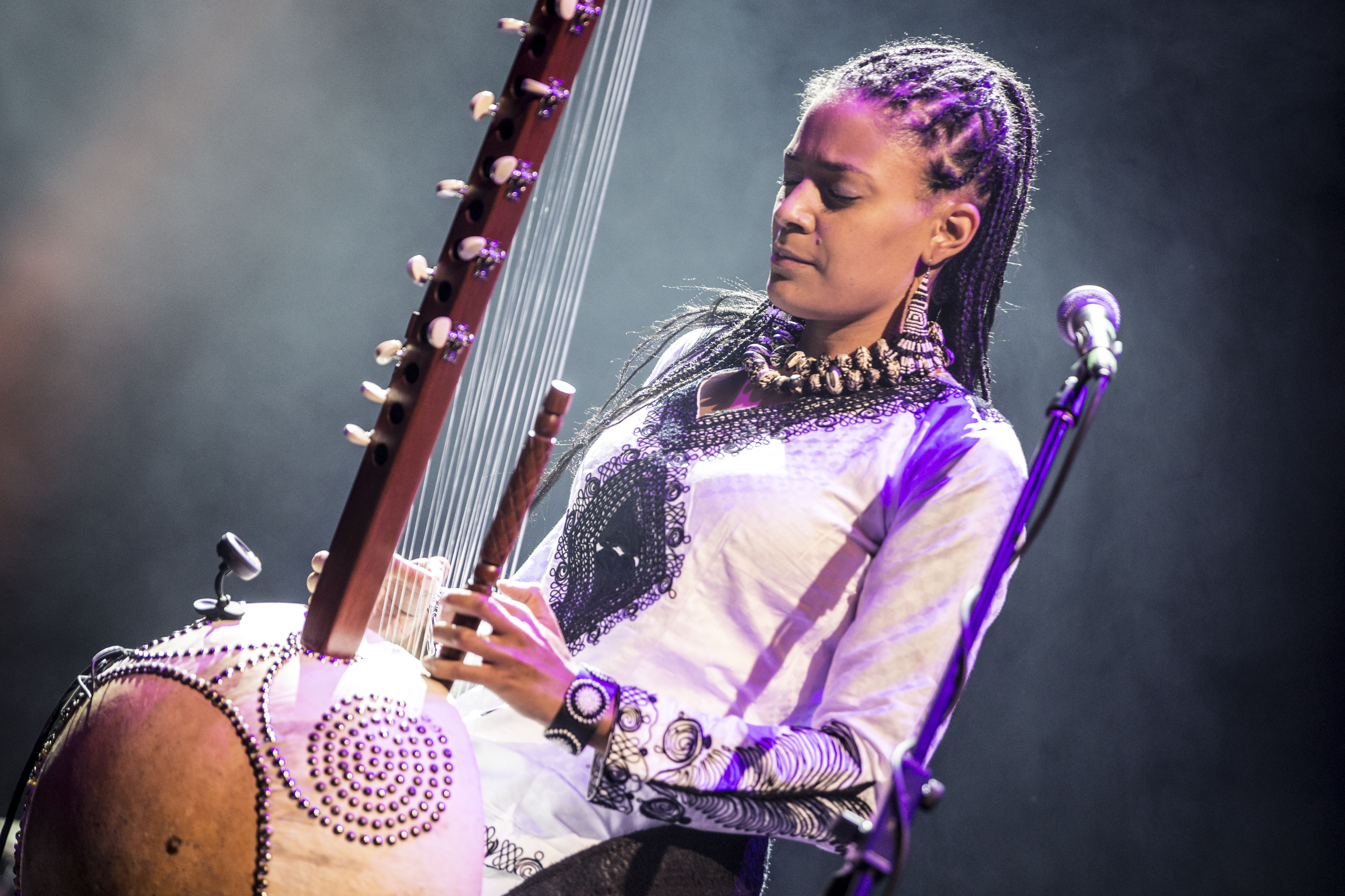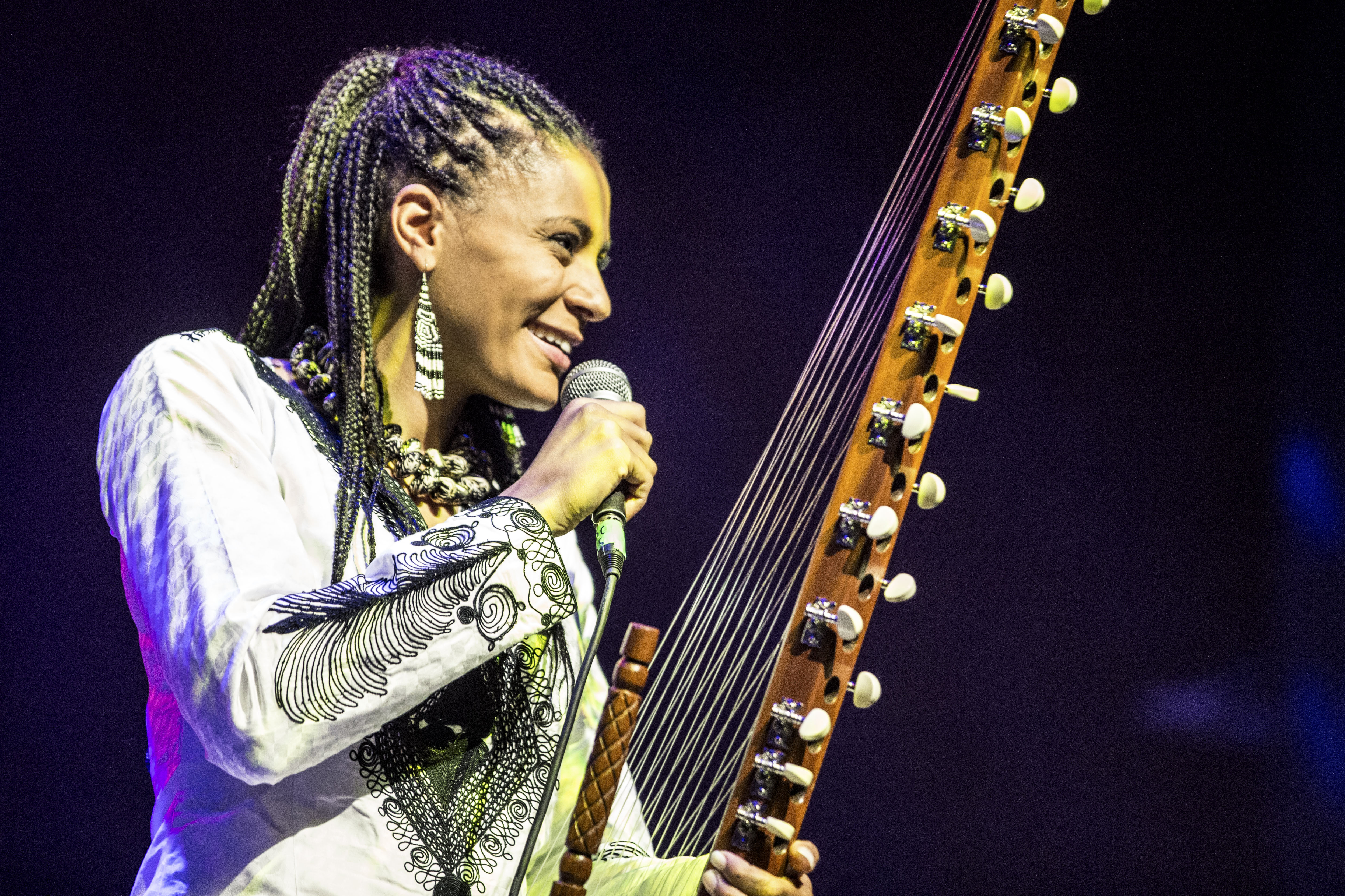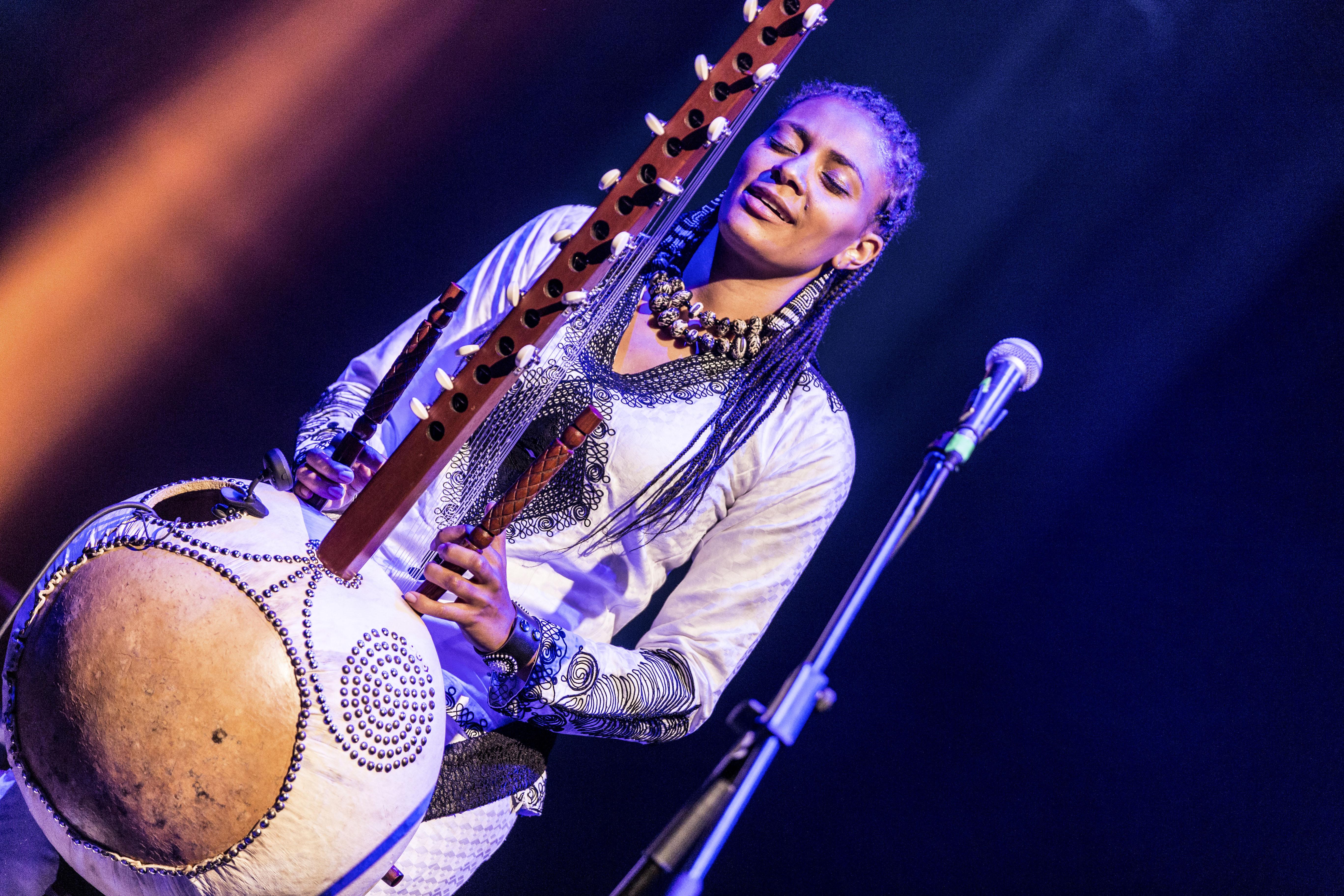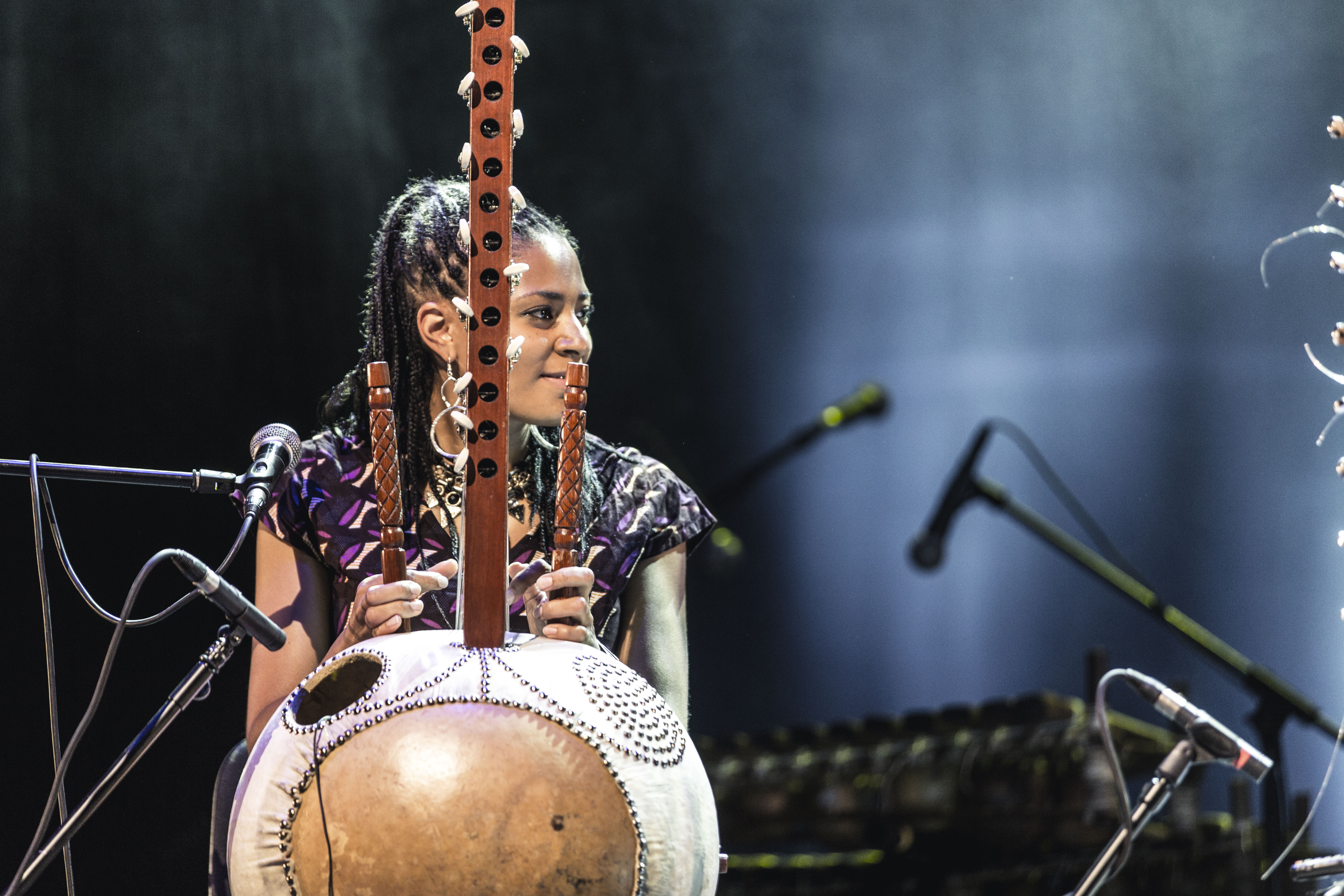 Die Kora ist ein westafrikanisches Harfeninstrument mit 21 Saiten, das traditionell von Männern gespielt wird. Sona Jobarteh hat mit dieser alten Regel gebrochen! Sie spielt die Kora stehend und demonstriert auf der Bühne ihr komplexes musikalisches Können als Frontfrau ihrer eigenen Band. Schon im Alter von vier Jahren lernte sie das Instrument von ihrem Bruder und legte damit den Grundstein für ihre internationale Karriere. Später studierte Sona Musik am Royal College of Music, Komposition an der Purcell School of Music und Afrikanistik an der School of Oriental and African Studies der University of London.