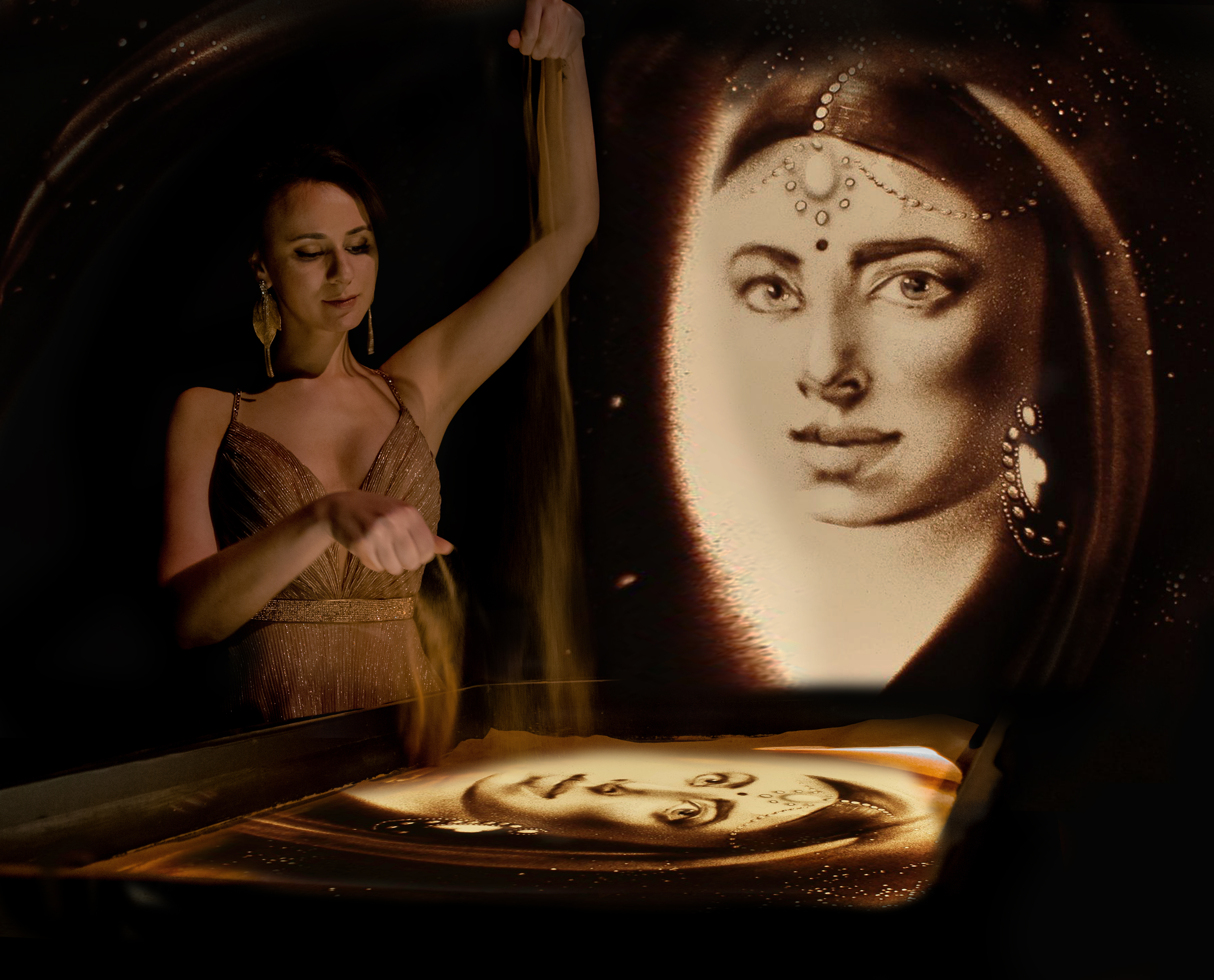 Sie kam mit einer Handvoll Sand und eroberte mit ihrem außergewöhnlichen Talent die Herzen ihres Publikums. Irina Titova ist die „QUEEN OF SAND“ und versteht es wie keine andere, die Flüchtigkeit des Augenblicks für einen magischen Moment auf die Leinwand zu bringen. Schon seit 2018 auf ihrer ersten Deutschlandtournee zog sie damit ihre Zuschauer in den Bann, nahm sie mit auf eine sensationelle Reise „In 80 Bildern um die Welt“ und wird nun 2025 endlich mit einer neuen Sandmalerei-Show für sehr viele strahlende Augen sorgen.