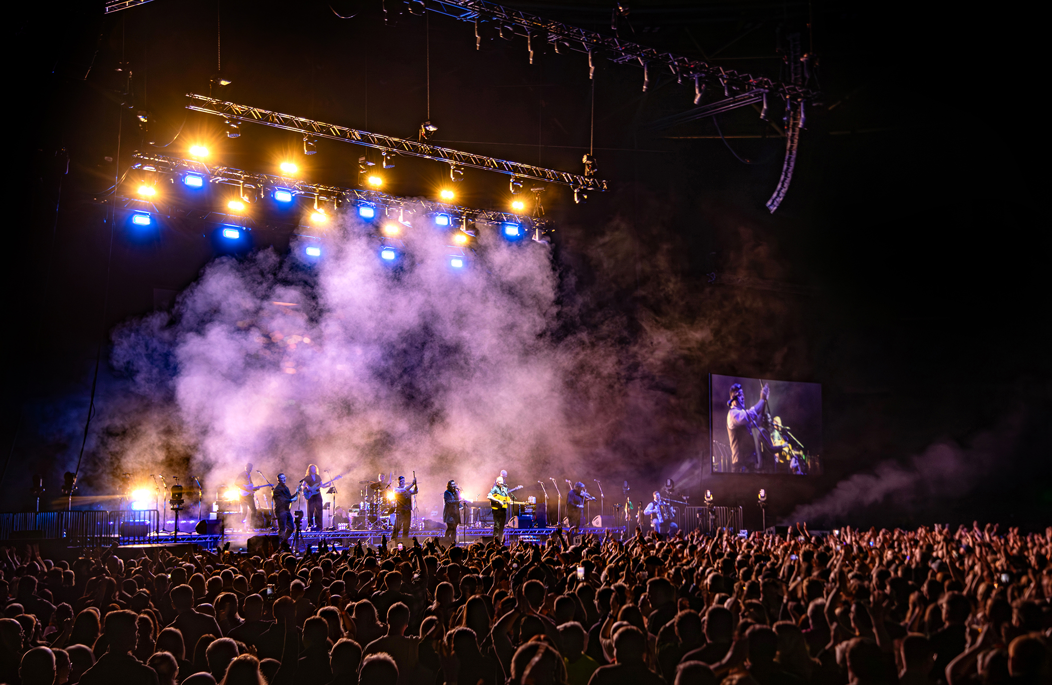Die Band spielt Dudelsack, Akkordeon, singt, spielt Geige und hat eine starke Rhythmusgruppe.