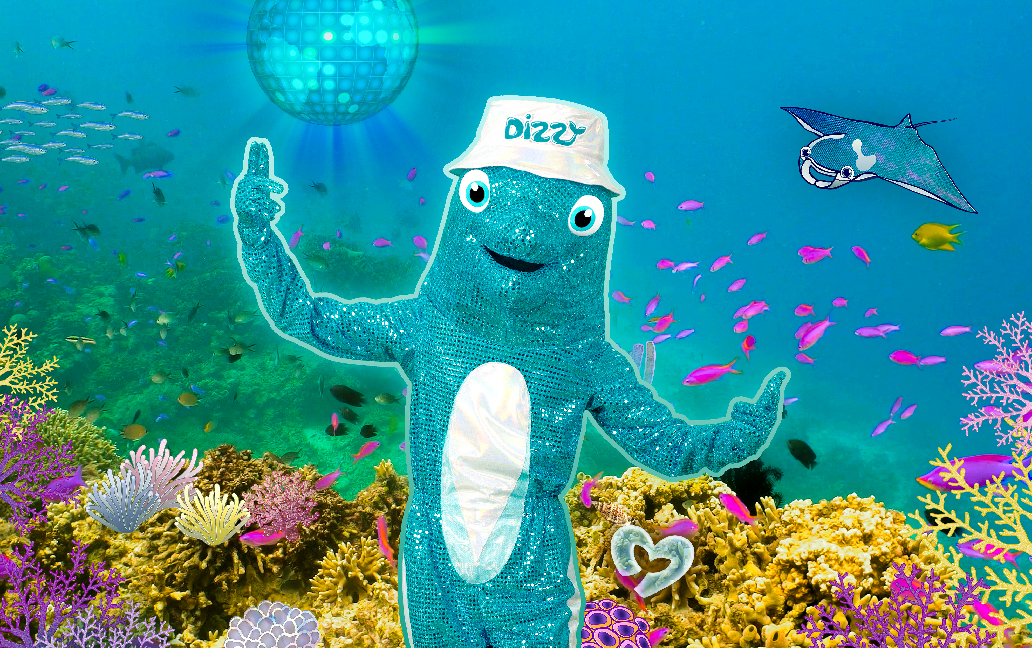 Dizzy wohnt mit ihrer Ocean Crew in der Lagune Nr. 3 und singt am liebsten über ihre Lieblingsdinge: Freundschaft, Mut, das Meer und seine Bewohner, Umweltschutz, Superkräfte, und natürlich... Aqua Party! Zieht Euch wasserfest und discomäßig an, denn beihier tanzt Ihr einmal durch die Weltmeere. Ihre Lieder sind so bunt wie das Regenbogenkorallenriff, doch hinter den blubbernden Disco Sounds steckt eine ebenso wichtige Message. Jeder zweite Atemzug wird für uns von Mikroorganismen aus dem Meer gefiltert. Wir alle tragen Verantwortung, um das zu retten, was Dizzy ihr „Paradies“ nennt.